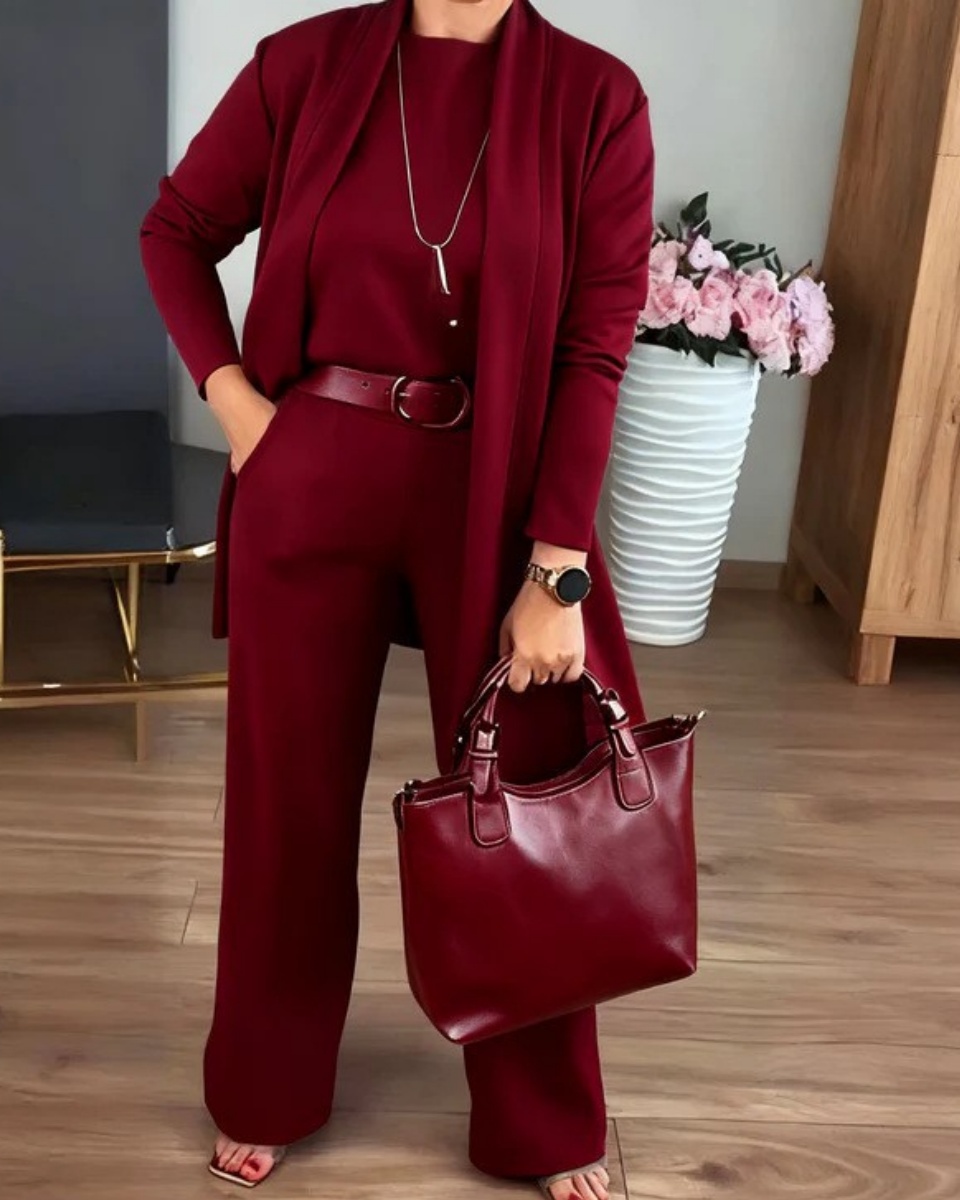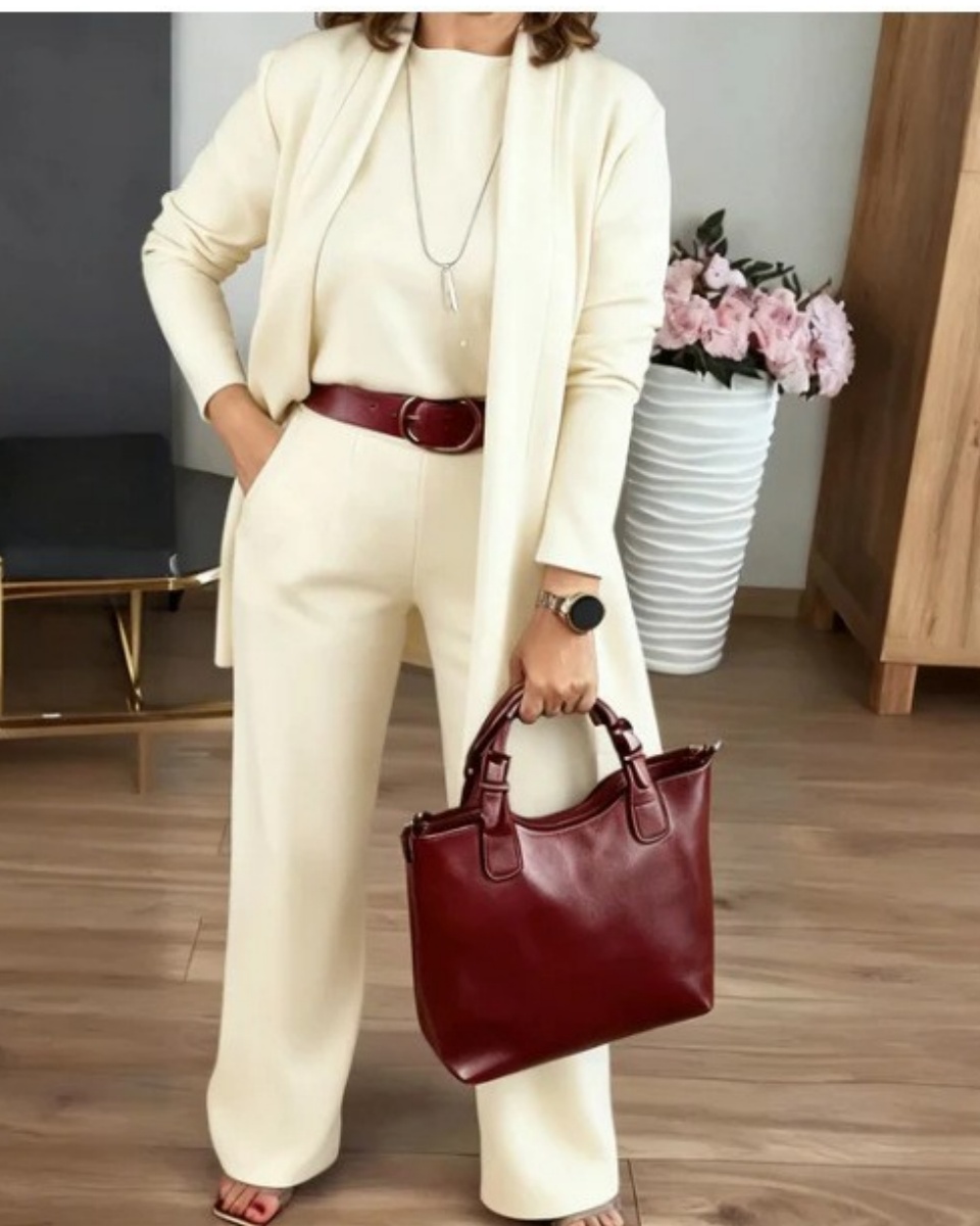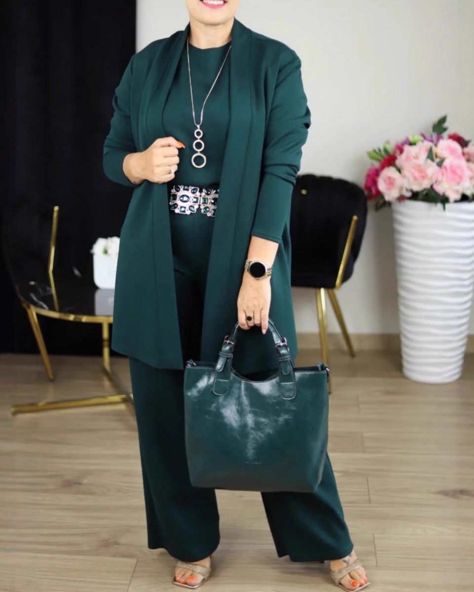 ⏳Oferta por tiempo limitado⏰Elegante conjunto de tres piezas, que incluye un cárdigan largo, un top y un pantalón💞4247238