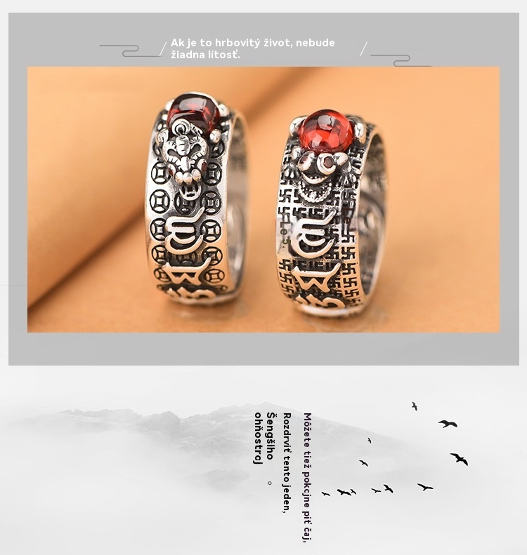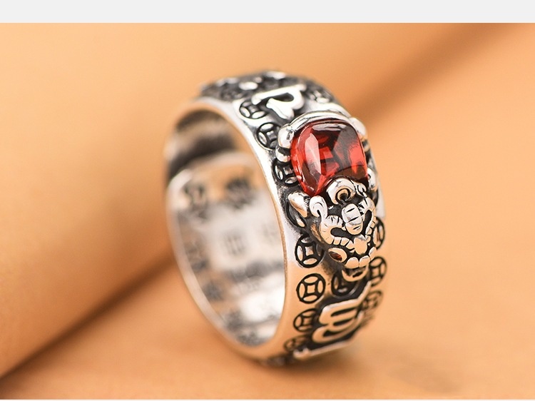 🔥💖Anillo de plata 999, estilo retro unisex con amuleto de la suerte Pixiu, fuerte y de moda._4247208