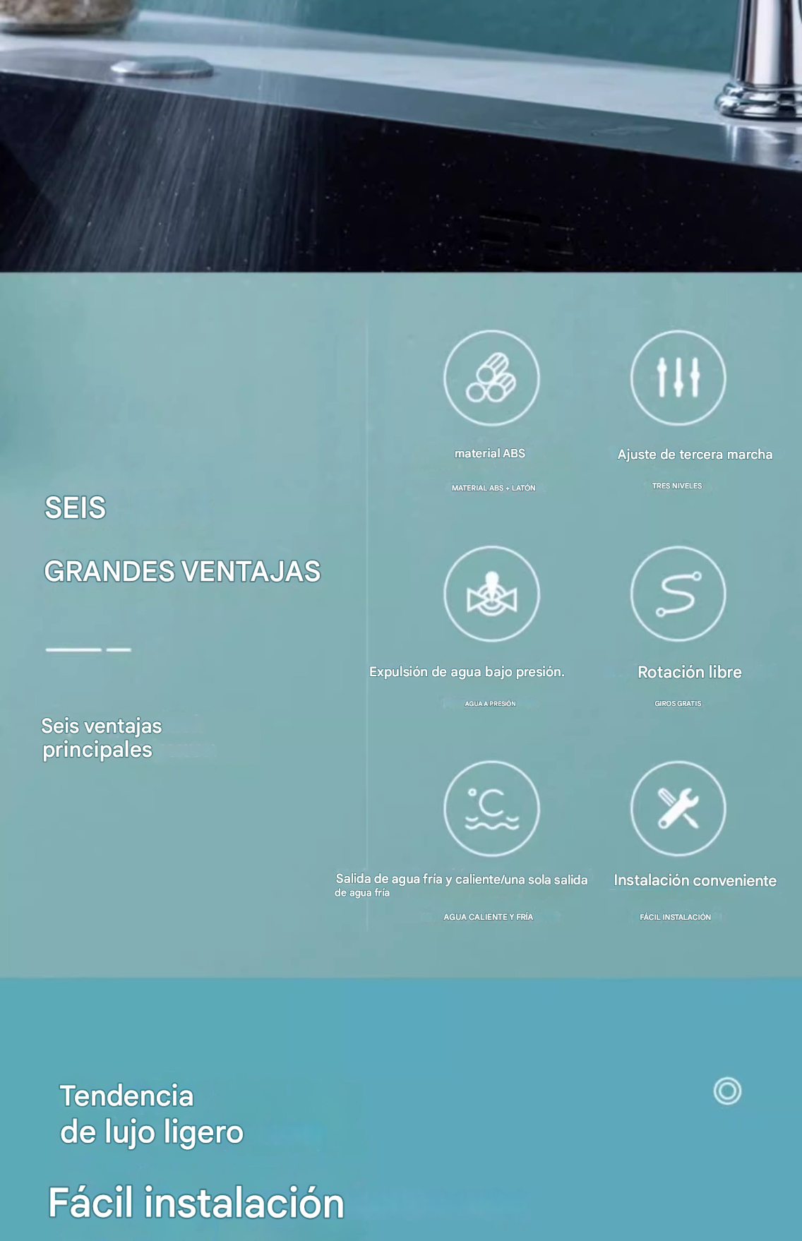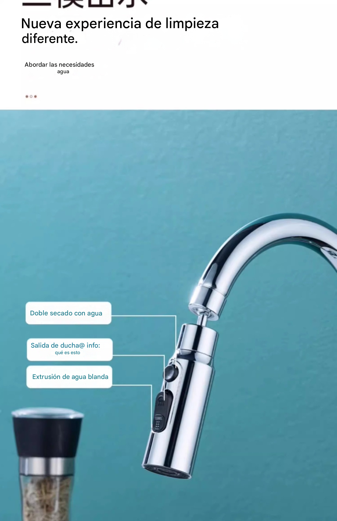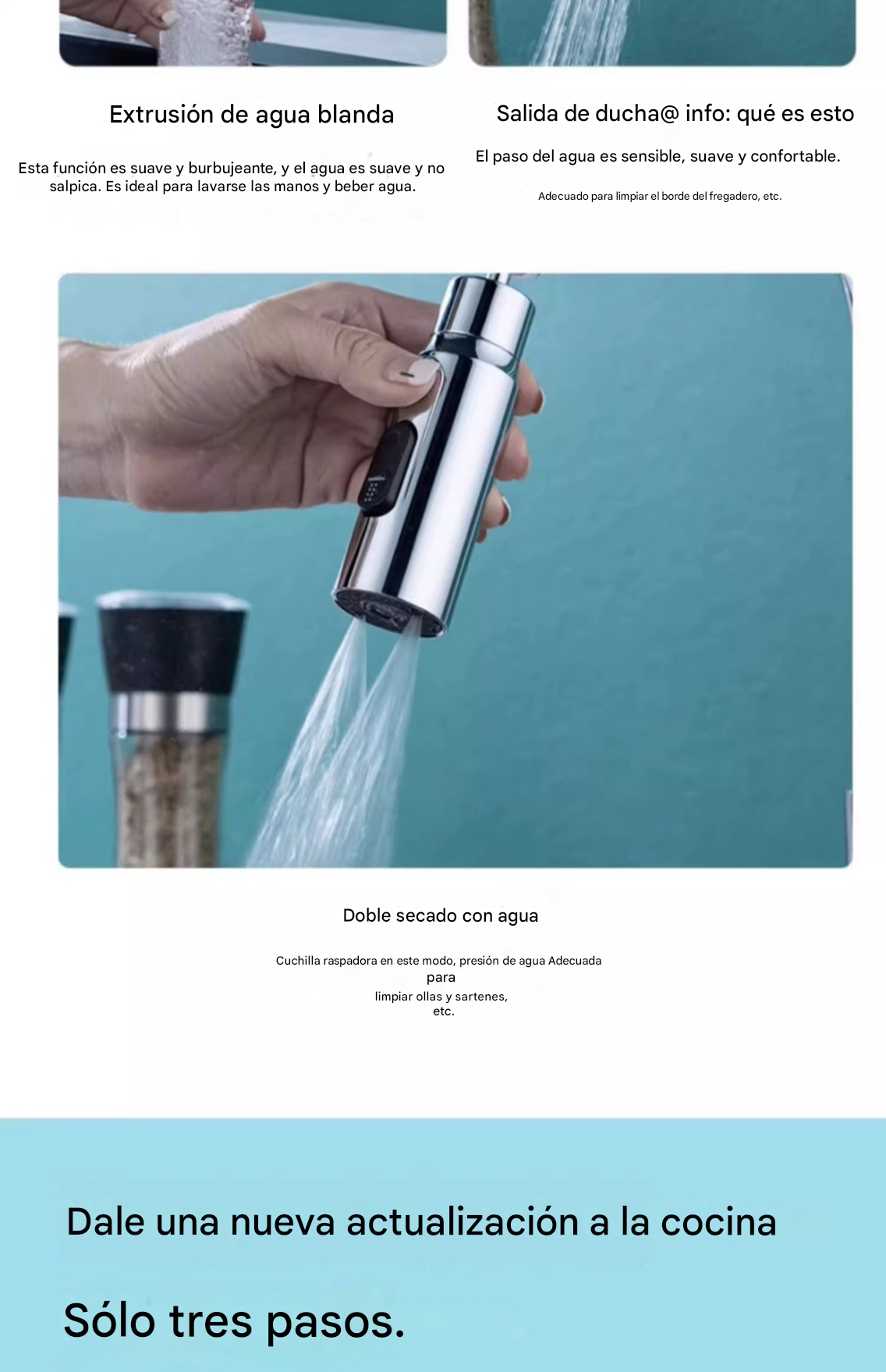 🔥💦 Grifo de cocina universal con filtro | A prueba de salpicaduras y con amplificador de presión_4212344